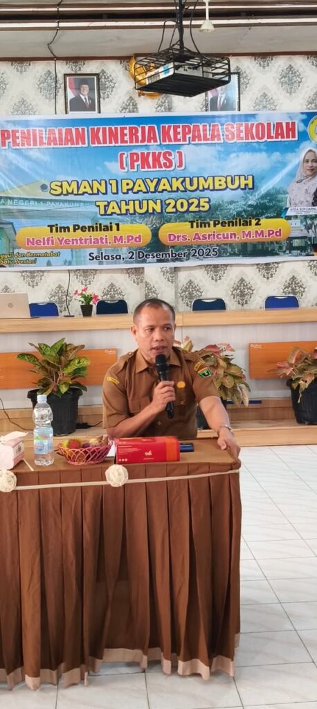 SMAN 1 Payakumbuh sukses melaksanakan Kegiatan Penilaian Kinerja Kepala Sekolah (PKKS) Tahun 2025 pada hari Selasa, 2 Desember 2025, bertempat di Aula SMAN 1 Payakumbuh. Kegiatan ini menjadi bagian penting dalam upaya peningkatan mutu satuan pendidikan, khususnya dalam mengevaluasi kinerja kepala sekolah secara menyeluruh.